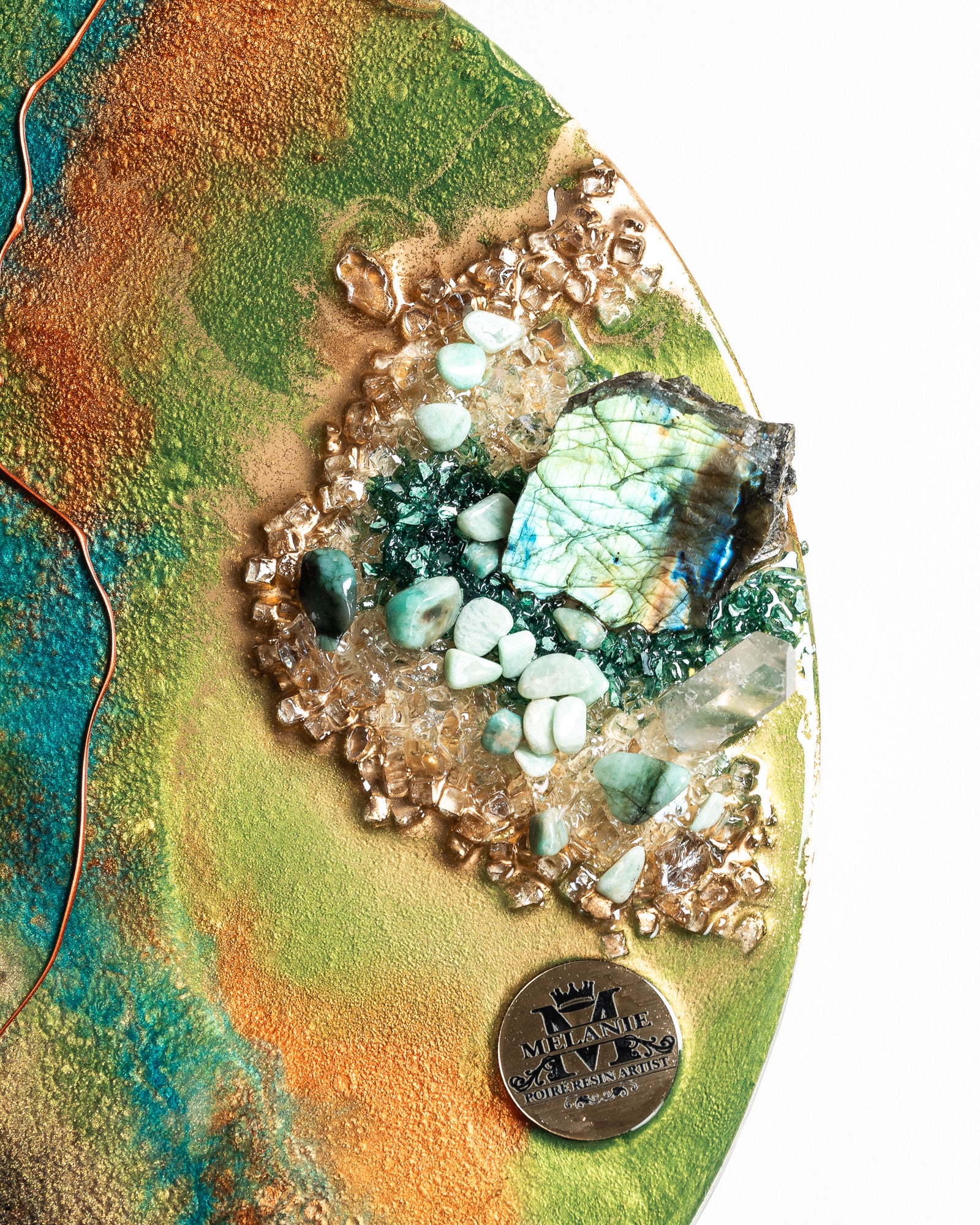 Inspirée par l'infini de la lune, ses cycles mystérieux et le rayonnement de sa lumière, LUNA rend hommage aux vibrations des cristaux et aux couleurs vibrantes qui la composent. Les cristaux utilisés dans cette œuvre ajoutent une dimension énergétique, amplifiant les propriétés spirituelles et esthétiques de l'ensemble.
