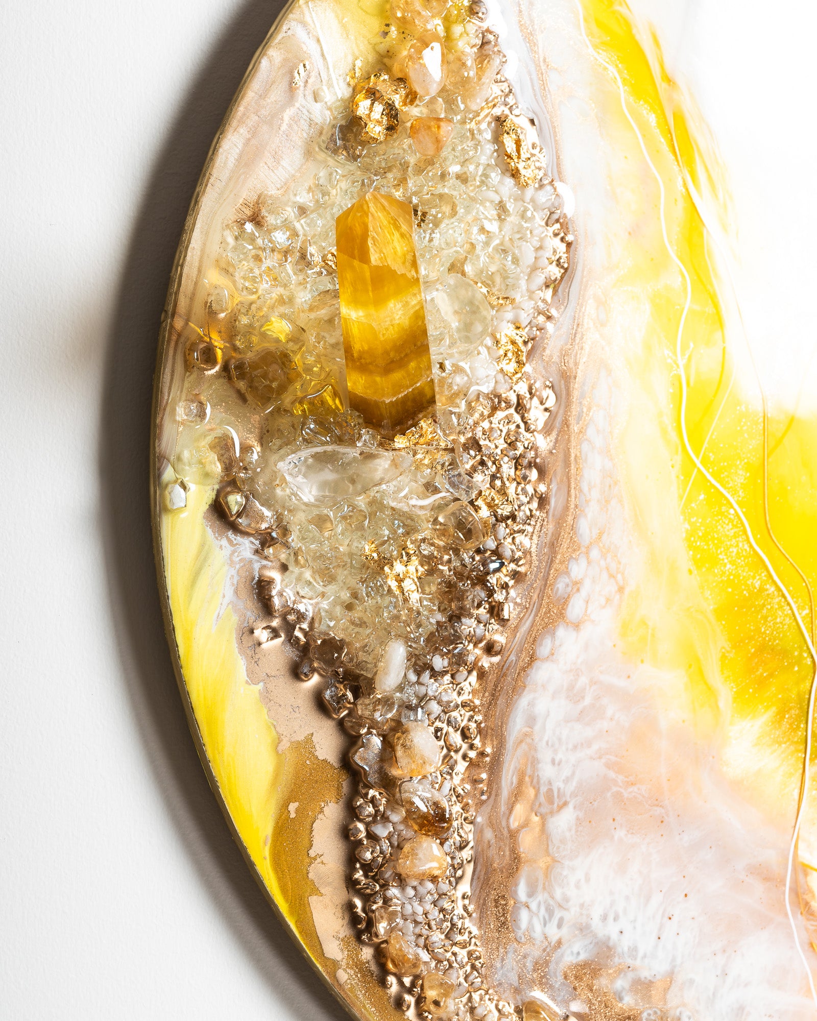 Les pierres jaunes sont symbole de la pureté des sentiments. Elles sont associées à l'affirmation de soi et la réussite tel le rayonnement du soleil. Symbolique de l'histoire, elles représentent souvent la fortune et la richesse. Ces propriétés protectrices sont nombreuses mais elles sont surtout reconnus pour leur bienfaits sur la peau et le tonus. leur effet légèrement désinhibant pourrait faire tomber la timidité. Ex: Citrine, Jaspe jaune, Oeil de tigre et l'ambre.